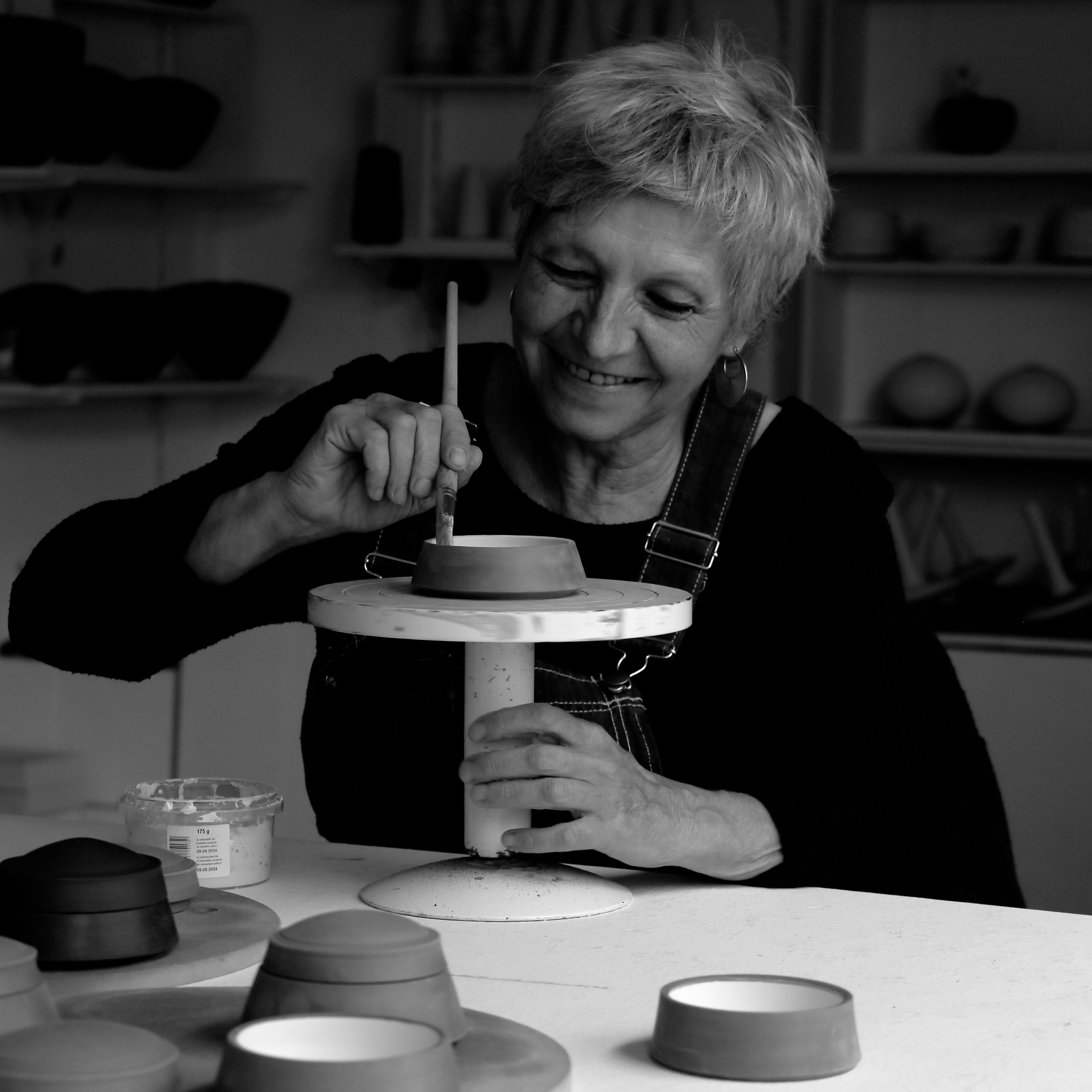 Je pratique mon métier dans mon atelier à Neuchâtel depuis 1987. L’argile m’accompagne depuis et ne cesse de me surprendre, obligeant un processus lent, souvent fait de renoncements. Matière rarement docile et souvent rebelle, offrant des perspectives infinies, ouvrant le champ de tous les possibles…